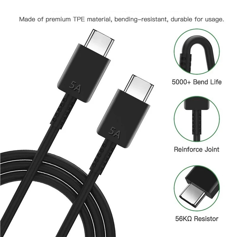 5A PD 45W Dual USB C Super Fast Charge Cable for Samsung S22 S23 S24 Plus Note 20 Ultra A53 A54 A55 Quick Charging Data Cable 2m
