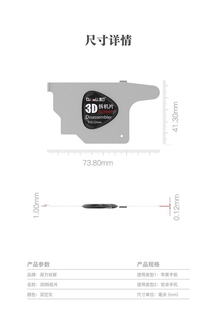 Qianli 3D 0.12MM Stainless Steel Ultra-thin Disassembly Blade Used for Mobile Phone Repair Screen Separation Pry Blade Tool