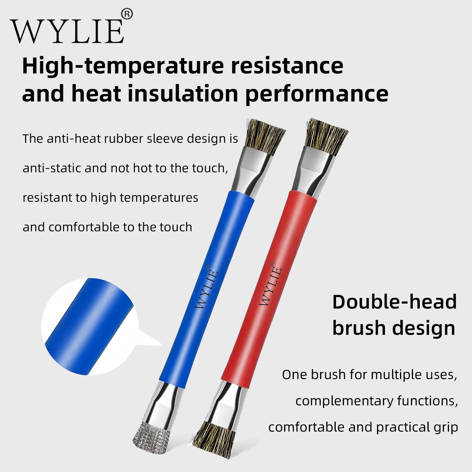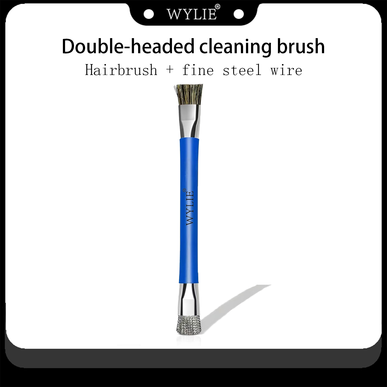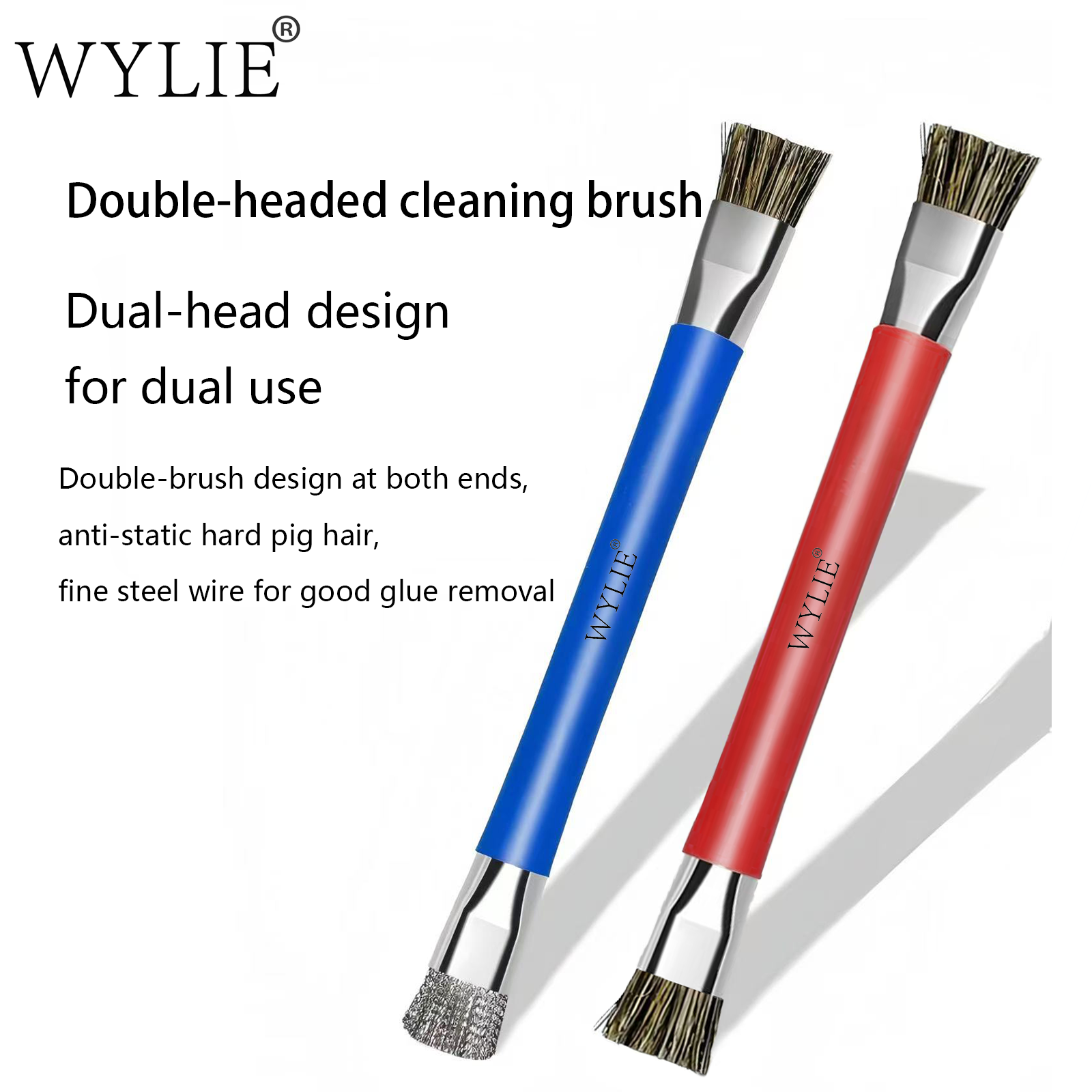 WYLIE Double-headed Cleaning Brush Anti-static Hard Pig Hair Fine Steel Wire for Good Cellphone Chip Glue Removal Brush Tool