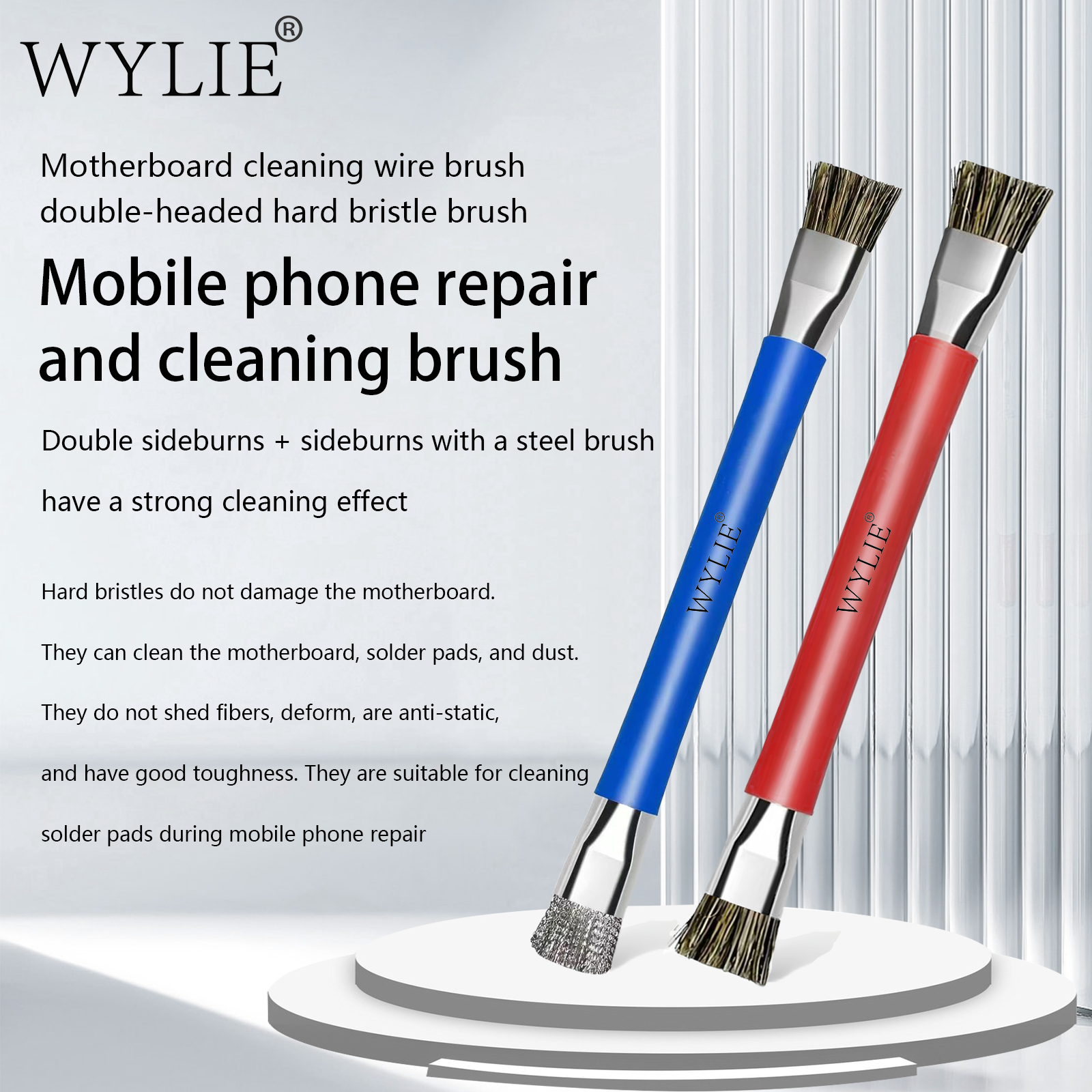 Home > Repair Tools > WYLIE Double-headed Cleaning Brush Anti-static Hard Pig Hair Fine Steel Wire for Good Cellphone Chip Glue Removal Brush Tool